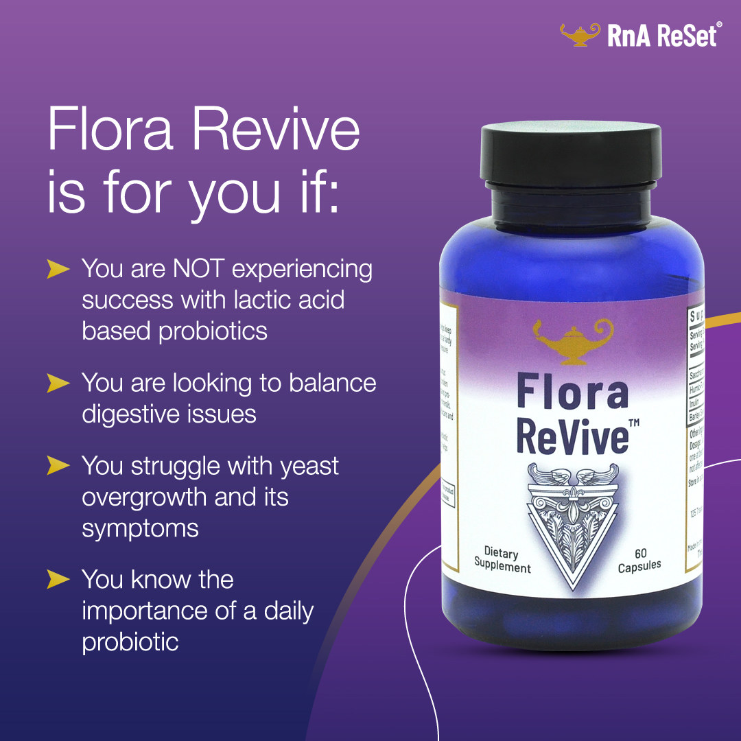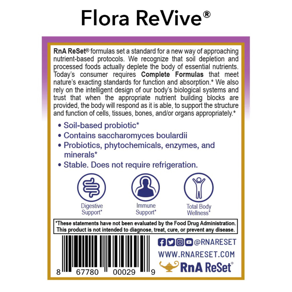 Flora ReVive® byla navržena pro podporu rovnováhy střevní mikroflóry a zároveň pro omezení přemnožení kvasinky Candida v těle. Spojuje probiotika a prebiotika do silné synbiotické receptuře, která podporuje celkové zdraví trávicího traktu. Jedinečné složení přípravku Flora ReVive® – zahrnující prebiotika, probiotika, fytonutrienty, enzymy a stopové minerály – přesahuje možnosti běžných probiotik a působí v souladu s přirozenými funkcemi organismu.