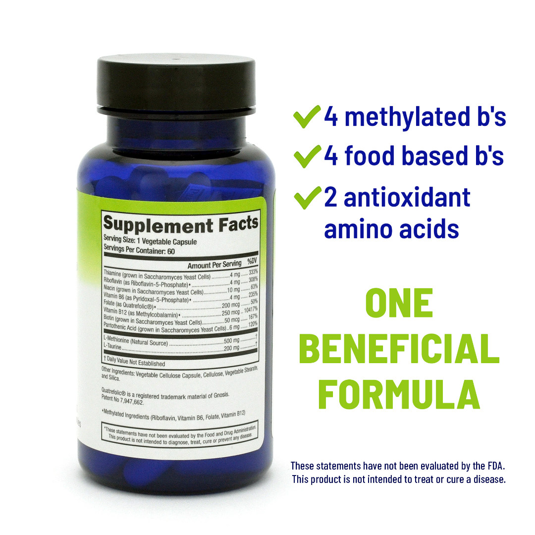 L-methionin a L-taurin jsou sirné aminokyseliny, které podporují detoxikační cesty jater závislé na sulfataci. Vitamíny skupiny B působí synergicky s hořčíkem a methioninem. Všechny čtyři látky jsou methylované, aby podpořily jaterní detoxikační procesy spojené s methylací.