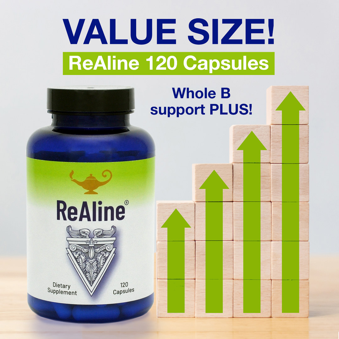 ReAline® nabízí ideální stavební látky pro pokrytí vašich nutričních potřeb – stačí jedna kapsle denně, která dodá buňkám energii potřebnou pro jejich optimální fungování. ReAline® je komplexní doplněk vitamínů skupiny B, který neobsahuje žádné složky živočišného původu a zároveň se výborně vstřebává, takže ho tělo dokáže téměř okamžitě využít.
